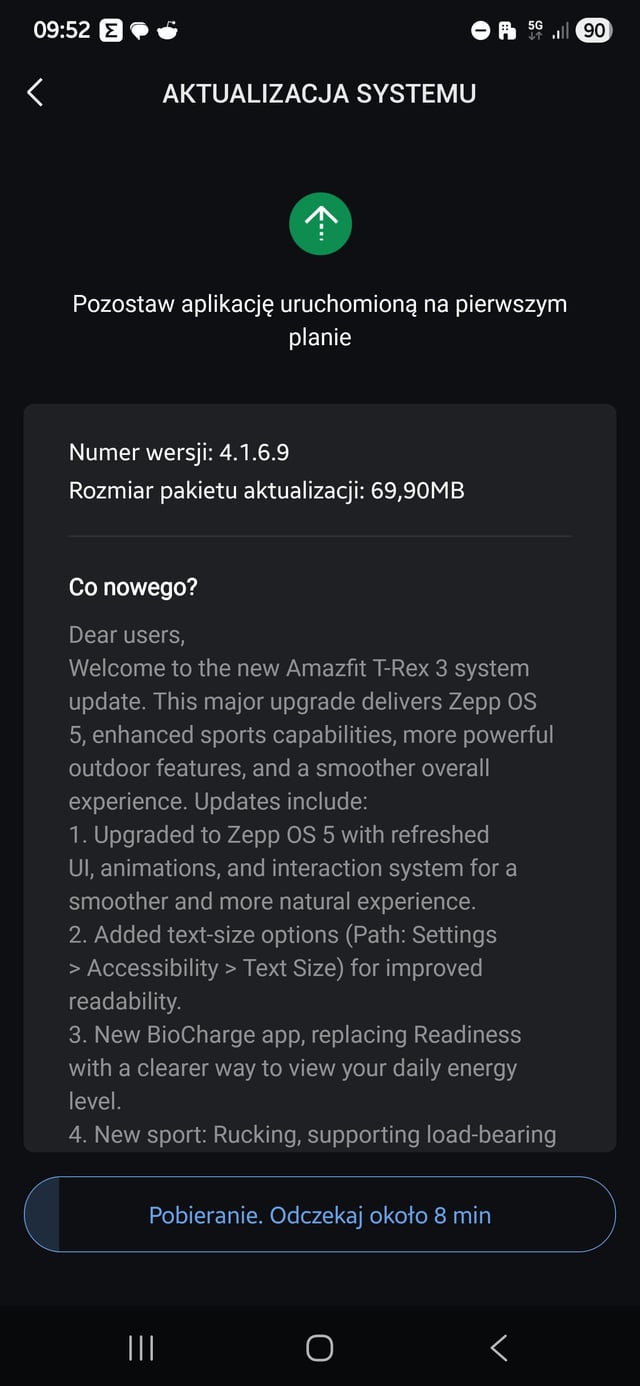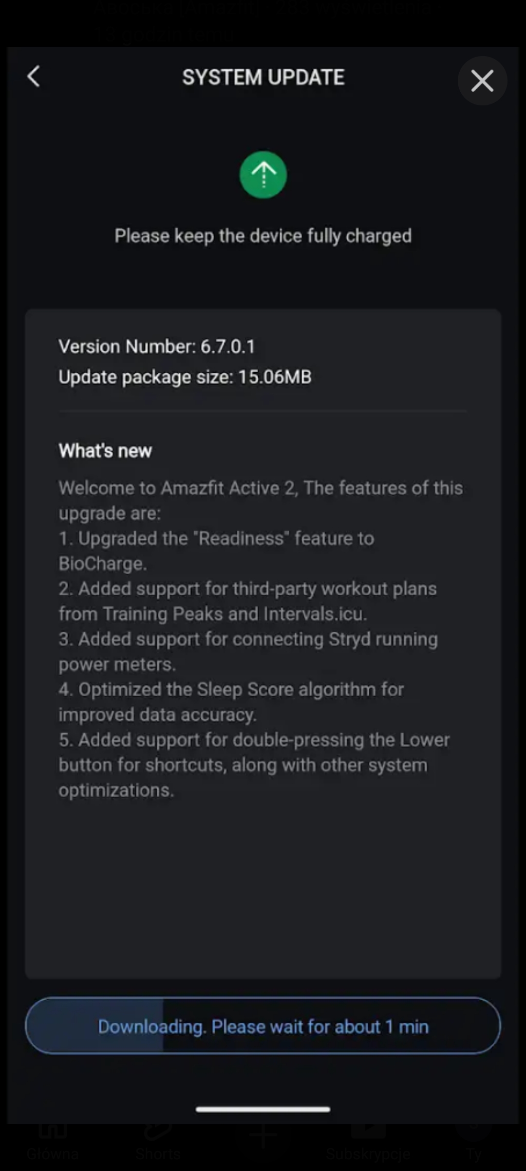Wymagane jest najnowsze fw dla automatycznej aktualizacji do Zepp Flow 2.2.0 (Balance 2, fw 3.35.0.5).
